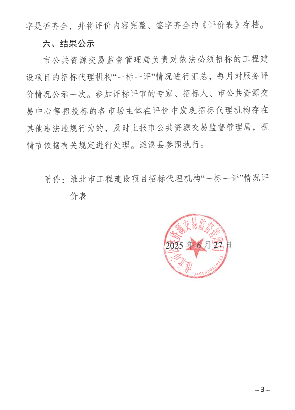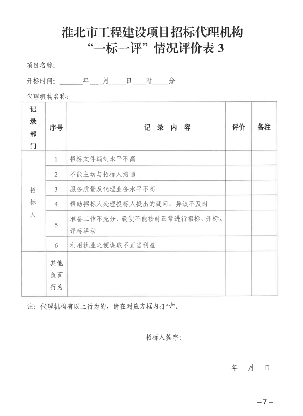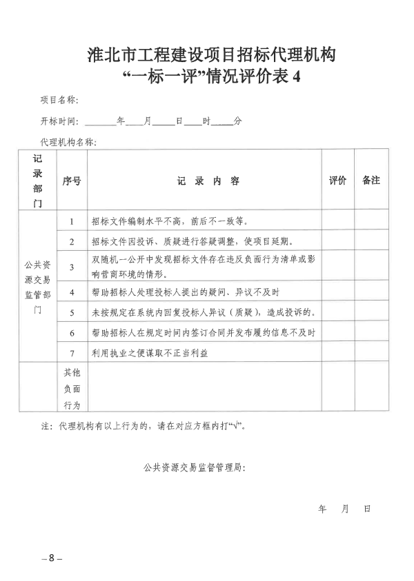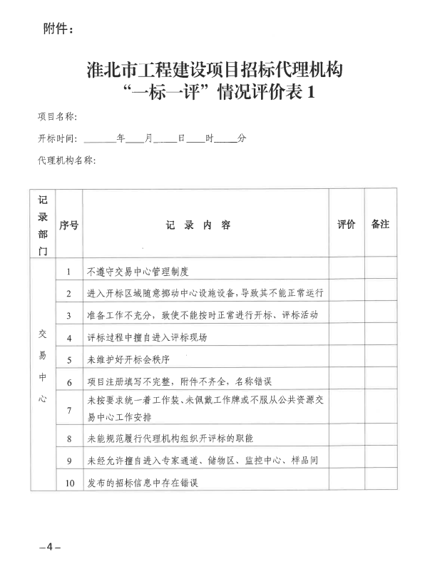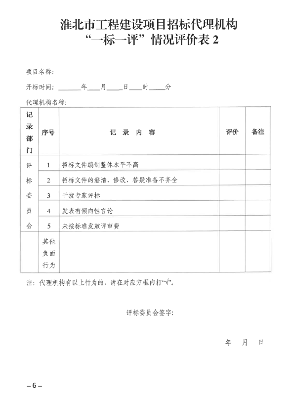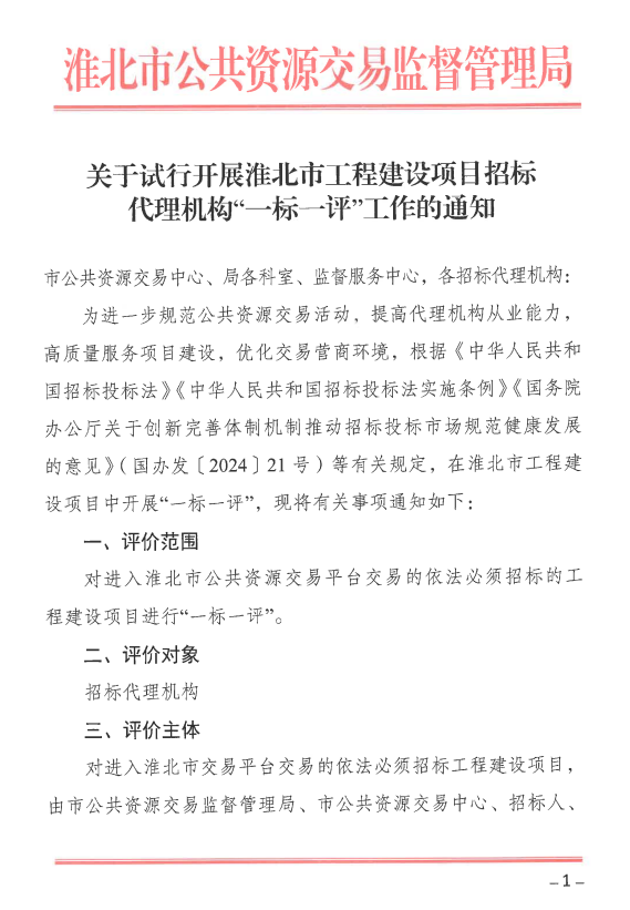 关于试行开展淮北市工程建设项目招标代理机构“一标一评”工作的通知